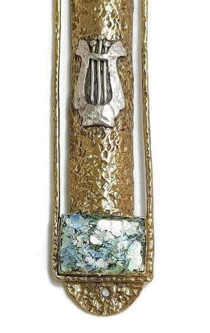 Beautiful silver Mezuzah pewter with Roman Glass shards, inspired by the David's Harp ornament. The Mezuza is a religious article which protects your home from harm, and adds beauty and connection to your doorway.
