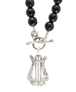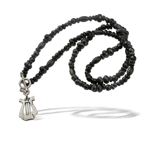 The necklace design was inspired by bronze ornament in the shape of an Ancient harp, was popularly known as "King David's Harp." It is 2 centimeters wide, and it happens to be very similar in shape and form to the symbol chosen to represent the City of David (chosen before the artifact was discovered). The ornament was found during the sifting of the Temple Mount dirt, in Emek Tzurim National Park at the foot of Mount of Olives. His time is unknown.