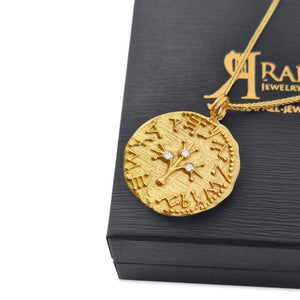 The Half Shekel, the sacred coin from the Temple period, represents the commandment of donation that every Jew gave to the Holy Temple twice a year. This coin, whose value was equal for every Jew regardless of social or economic status, symbolizes equality before God and shared responsibility for maintaining the Holy Temple. This luxurious jewelry carries a sacred memory of the Temple's glory and reminds us of every Jew's eternal obligation to contribute to the community and the Jewish people.