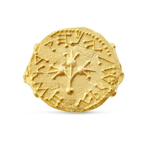 The Half Shekel, the sacred coin from the Temple period, represents the commandment of donation that every Jew gave to the Holy Temple twice a year. This coin, whose value was equal for every Jew regardless of social or economic status, symbolizes equality before God and shared responsibility for maintaining the Holy Temple. This luxurious jewelry carries a sacred memory of the Temple's glory and reminds us of every Jew's eternal obligation to contribute to the community and the Jewish people.