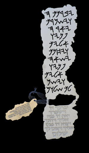 Add holiness to your home with this breathtaking priestly blessing decoration! Inspired by the design of two silver plates found at an archeological site in Jerusalem, the hanging priestly blessing decoration features the ancient Hebrew priestly blessing on top, and the modern Hebrew version at the bottom: