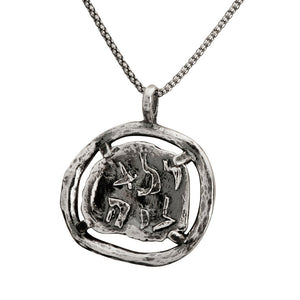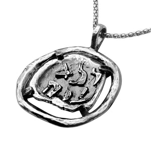 Feel holy and pure with this 'Pure for God' coin pendant necklace. Inspired by a tiny seal with the Aramaic inscription 'Daka LeYa', meaning 'Pure for God', which was discovered during archeological excavations, and dates back to the Second Temple, this coin is believed to have attested to the purity of the gift brought to the Temple. The necklace's unique design features an outer Sterling Silver circle, with a Sterling Silver coin with an Aramaic inscription.